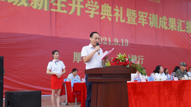 李益紀(jì)委書記宣布廣西工程職業(yè)學(xué)院2021級新生開學(xué)典禮暨軍訓(xùn)成果匯報(bào)會正式開始!