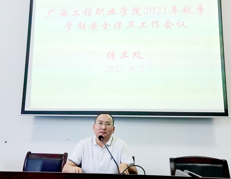按照學(xué)校年度工作總體安排部署,為確保廣大師生的生命安全,落實(shí)疫情防控常態(tài)化條件下的各項(xiàng)安保措施,確保校園的安全穩(wěn)定。9月2日下午,保衛(wèi)處在圖書館學(xué)術(shù)報告廳召開2021年秋季學(xué)期安全保衛(wèi)工作會議,校黨委委員、副校長彭高彬出席會議并作重要講話,全體安保人員參加了會議。會議由保衛(wèi)處李捷副處長主持。