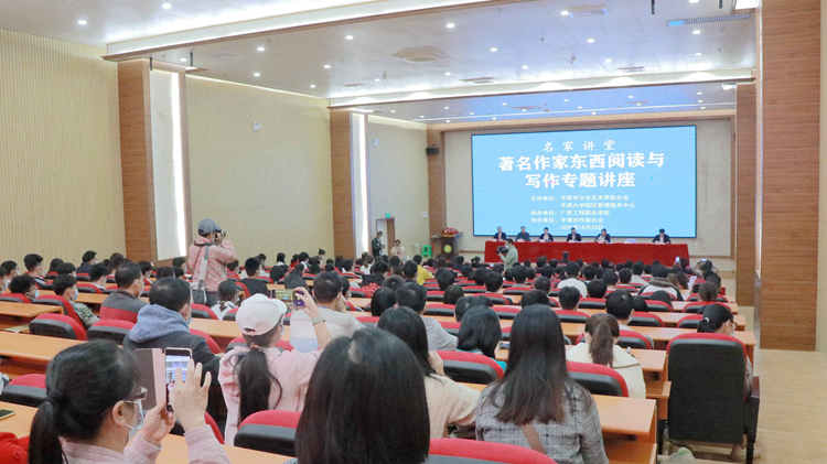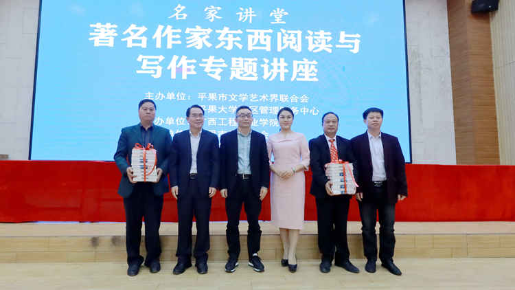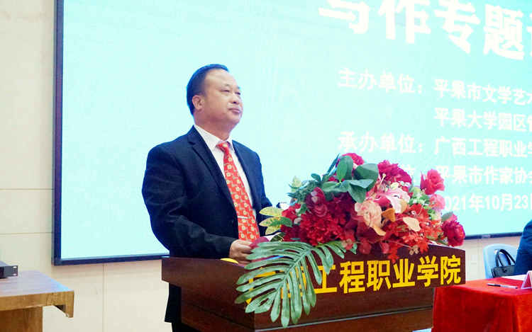 2021年10月23日上午,由平果市文學(xué)藝術(shù)界聯(lián)合會(huì)、平果市大學(xué)園區(qū)管理服務(wù)中心主辦,廣西工程職業(yè)學(xué)院承辦,平果市作家協(xié)會(huì)協(xié)辦的平果市2021年“名家講堂——田代琳(東西)閱讀與寫作專題講座”在我校圖文信息大樓報(bào)告廳舉行。