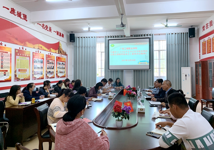 10月26日下午,我校黨委理論學(xué)習(xí)中心組(擴(kuò)大)在圖書(shū)館黨員活動(dòng)室召開(kāi)“習(xí)近平總書(shū)記在學(xué)校思想政治理論課教師座談會(huì)上重要講話精神專題學(xué)習(xí)會(huì)”,教育廳督導(dǎo)專員、校黨委書(shū)記呂偉斌,黨委副書(shū)記胡細(xì)木,黨委委員、副校長(zhǎng)彭高彬,各黨委委員、各黨支部書(shū)記、支委、校團(tuán)委負(fù)責(zé)人、思政教學(xué)部教師參加會(huì)議,會(huì)議由呂偉斌主持。