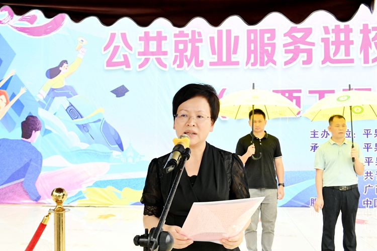 平果市人民政府副市長農(nóng)麗秋講話,她指出,平果市委、政府始終把促進(jìn)高校畢業(yè)生就業(yè)創(chuàng)業(yè)擺在突出位置,全力以赴穩(wěn)就業(yè)保就業(yè),熱切期盼人才留在平果,為平果建設(shè)釋放能量、貢獻(xiàn)力量。希望在校學(xué)生珍惜寶貴時光,認(rèn)真規(guī)劃職業(yè)生涯,畢業(yè)生積極轉(zhuǎn)變就業(yè)觀念,及時找準(zhǔn)就業(yè)定位,不負(fù)青春、不負(fù)韶華;各高校、責(zé)任單位、企業(yè)代表凝心聚力,加大政策落實力度,優(yōu)化就業(yè)創(chuàng)業(yè)服務(wù),全力提供就業(yè)崗位,做好高校畢業(yè)生就業(yè)創(chuàng)業(yè)服務(wù)工作力度。