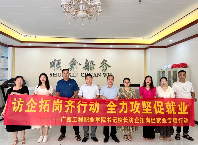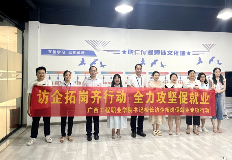 為深入開展高校書記校長訪企拓崗促就業(yè)專項(xiàng)行動(dòng),對接企業(yè)用人需求,拓寬畢業(yè)生就業(yè)渠道和資源,全力促進(jìn)畢業(yè)生更加充分更高質(zhì)量就業(yè),服務(wù)企業(yè)發(fā)展,從2023年4月到7月,廣西工程職業(yè)學(xué)院董事長李益、副董事長林艷及黨委書記、督導(dǎo)專員蒙本曼,校長羅艷妮等帶隊(duì)深入兩廣80多家企業(yè)和9所幼兒園進(jìn)行訪企拓崗促就業(yè)行動(dòng)。學(xué)校黨政領(lǐng)導(dǎo)班子成員、中層干部參加了此次專項(xiàng)行動(dòng)。