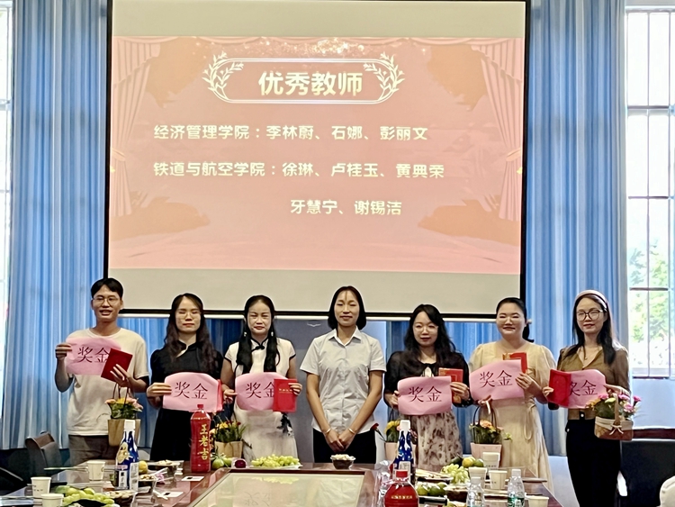 經濟管理學院黨支部書記、院長龐英連和鐵道與航空學院廖嬌受學校紀委書記、副校長彭高彬委托,組織鐵道與航空學院、經濟管理學院召開教師座談會,并對學院優(yōu)秀教師、優(yōu)秀輔導員進行表彰。會上,部門負責人和新教師代表分別發(fā)言,教師還進行了才藝匯演。