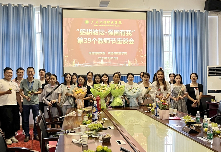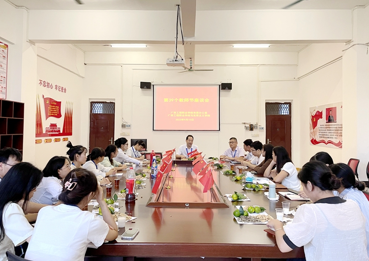 副校長黃德偉組織教務處、教學督導室、公共基礎部、汽車與機電學院召開慶祝第39個教師節(jié)座談會。