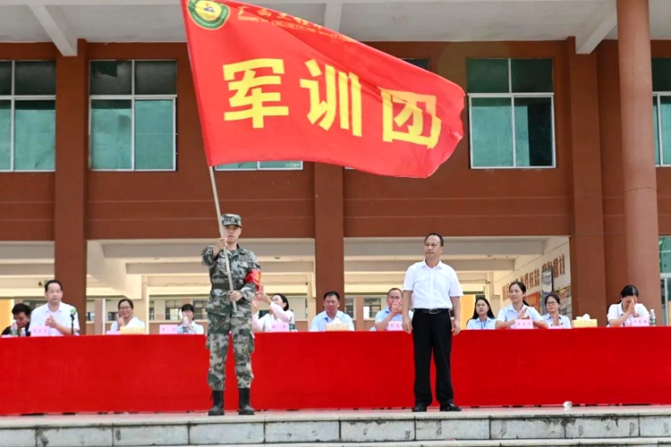 動員大會上,李益董事長為軍訓(xùn)團(tuán)授軍訓(xùn)團(tuán)團(tuán)旗。