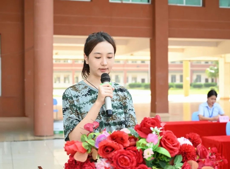 新生代表教育學(xué)院2023級藝術(shù)教育專業(yè)吳懷寧同學(xué)發(fā)言,表示將在軍訓(xùn)中一切行動聽從指揮,無論多苦、多累,無論是風(fēng)吹還是雨打,決不退縮。并承諾努力做到:服從命令,聽從指揮;鍛煉意志,苦練基本功;發(fā)揚(yáng)軍訓(xùn)優(yōu)良作風(fēng)。