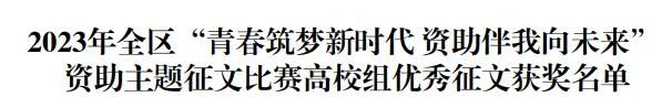 為進(jìn)一步加大學(xué)生資助政策宣傳力度,加強(qiáng)對(duì)受獎(jiǎng)助學(xué)生的勵(lì)志感恩教育,我校師生積極參加了 2023 年全區(qū)“青春筑夢(mèng)新時(shí)代 資助伴我向未來(lái)”資助主題征文比賽、全區(qū)高校2023年“我為資助代言”學(xué)生資助宣傳大使評(píng)選活動(dòng)。
