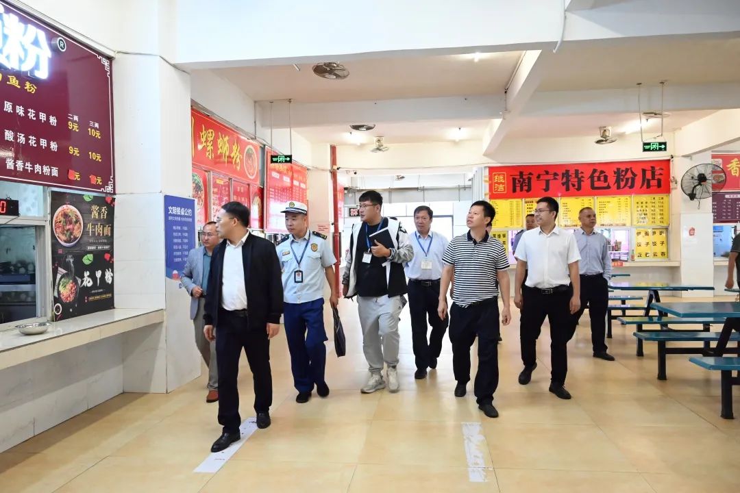 為認真貫徹落實習近平總書記關于安全生產(chǎn)重要指示批示精神,按照自治區(qū)、百色市、平果市關于加強安全生產(chǎn)工作系列決策部署和重要工作批示,扎實推進重點領域消防安全大排查大整治行動,深刻汲取近年來的典型安全事故教訓,切實做好當前火災防控工作,2023年10月23日,由市委常委、政法委書記秦運德為組長,市委政法委常務副書記申升為副組長的檢查組來我校督導檢查消防安全大排查大整治行動。平果大學園區(qū)黨工委書記、管理服務中心黨組書記、主任許安著,副主任農(nóng)浩,我校紀委書記、副校長彭高彬,后勤管理中心主任劉兆兵、法務部部長盧保日、保衛(wèi)處副處長王冬冬、基建處科長馮寧陪同檢查工作。
