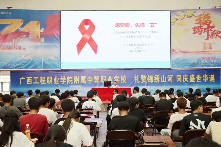 平果市疾病控制中心的方燕飛作艾滋病知識專題講座。她主要從艾滋病的含義、傳播途徑以及預防措施等三個方面進行了深入的講解,以提高同學們對艾滋病的認識,并倡導同學們關心社會、關愛艾滋病患者,珍愛自己的生命。