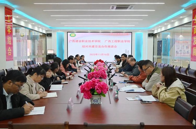 為進(jìn)一步提升職業(yè)院校整體辦學(xué)水平,提高人才培養(yǎng)質(zhì)量,增進(jìn)兄弟院校之間的學(xué)習(xí)與交流,做好結(jié)對幫扶共建工作,促進(jìn)學(xué)校高質(zhì)量發(fā)展,11月16日,廣西建設(shè)職業(yè)技術(shù)學(xué)院一行10人到我校開展結(jié)對共建交流合作推進(jìn)會。