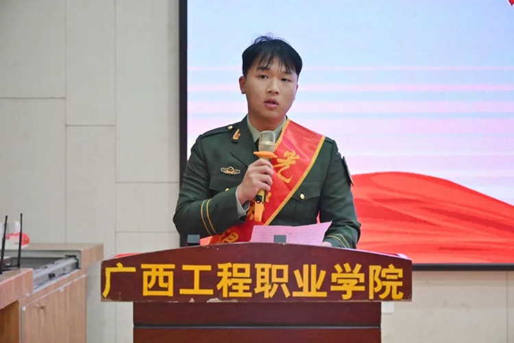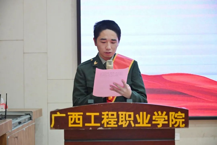 退役復(fù)學(xué)新生代表汽車與機(jī)電學(xué)院伍琦同學(xué)發(fā)言,他承諾將繼續(xù)繼承和發(fā)揚(yáng)部隊(duì)的優(yōu)良傳統(tǒng),讓軍人的信念與擔(dān)當(dāng)在校園中熠熠生輝,以實(shí)際行動(dòng)詮釋“退伍不褪色”的鏗鏘誓言,為學(xué)弟學(xué)妹做好表率。
