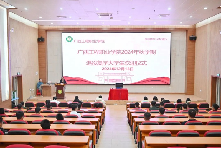 2024年12月13日,學(xué)校在圖文信息大樓一樓報(bào)告廳舉行“從軍磨礪報(bào)國(guó)志,卸甲揚(yáng)帆新征程”2024年秋季學(xué)期退役復(fù)學(xué)大學(xué)生歡迎儀式。