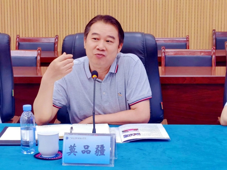 圖為廣西交通職業(yè)技術(shù)學(xué)院路橋工程學(xué)院院長莫品疆主持會(huì)議