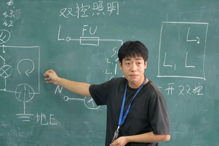 圖為池浩鵬老師授課《初級維修電工實訓》