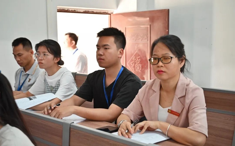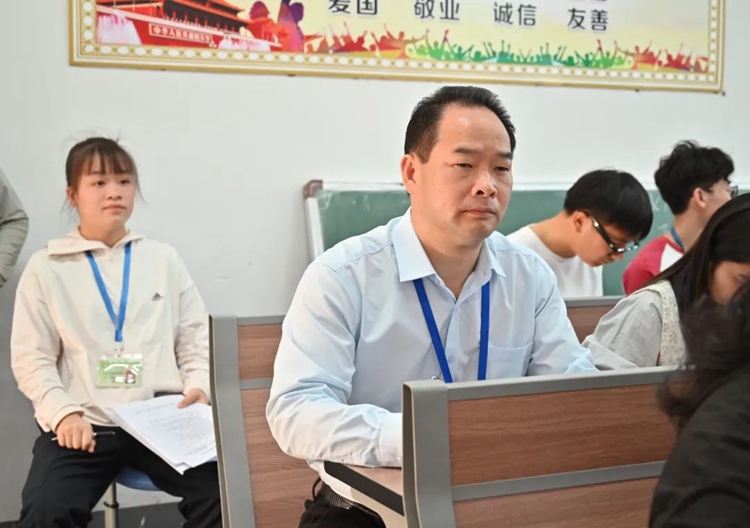 學校黨委書記、督導專員蒙本曼深入教學一線,認真聆聽并細致評析教師們的公開課。