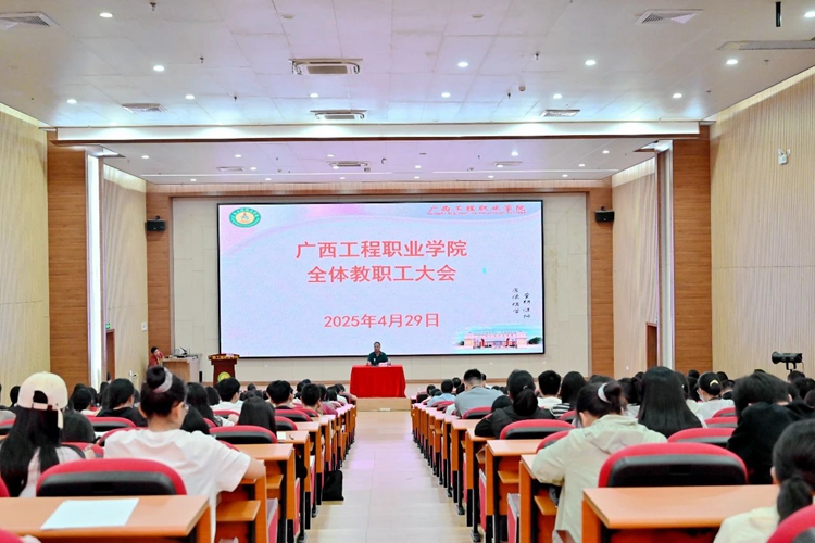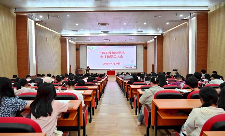 2025年4月29日下午,廣西工程職業(yè)學(xué)院在圖文信息大樓一樓報(bào)告廳召開(kāi)全體教職工會(huì)議,學(xué)校董事長(zhǎng)李益,黨委書(shū)記、督導(dǎo)專員蒙本曼,黨委副書(shū)記黃秋霞,副校長(zhǎng)蔣茂麗、黃德偉,校長(zhǎng)助理梁善雅出席會(huì)議。會(huì)議由黨委副書(shū)記、校長(zhǎng)羅艷妮主持。