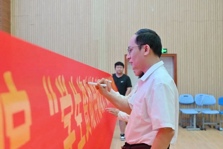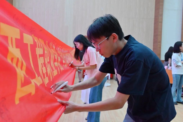儀式現(xiàn)場,同學(xué)們紛紛拿起筆,在橫幅上留下自己的名字,莊嚴(yán)承諾會(huì)把資助關(guān)懷轉(zhuǎn)化為求知熱情,以拼搏進(jìn)取的姿態(tài)回報(bào)國家的殷切期望。