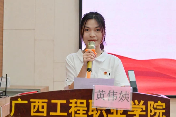 圖為學(xué)生代表黃偉姨同學(xué)發(fā)言