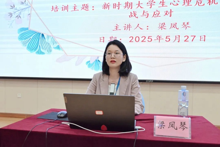 為進(jìn)一步加強(qiáng)我校大學(xué)生心理健康教育工作,提升學(xué)生工作隊(duì)伍對(duì)大學(xué)生心理危機(jī)的識(shí)別能力、預(yù)防意識(shí)和干預(yù)水平,有效保障學(xué)生的身心健康與校園安全穩(wěn)定,5月27日,學(xué)校在圖文信息大樓三樓學(xué)術(shù)報(bào)告廳開展“新時(shí)期大學(xué)生心理危機(jī)干預(yù)的挑戰(zhàn)與應(yīng)對(duì)”專題培訓(xùn),由學(xué)生工作處處長梁鳳琴主講。此次培訓(xùn)是我校2025年春季學(xué)期第十期教師常規(guī)培訓(xùn)。