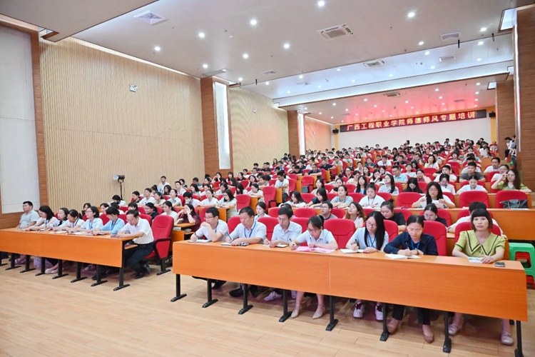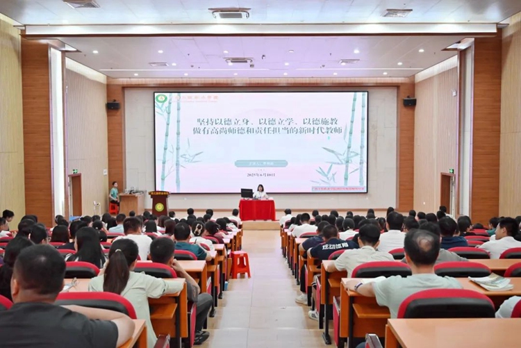 為進(jìn)一步加強(qiáng)我校師德師風(fēng)建設(shè),提升教師職業(yè)道德水平,培養(yǎng)一支業(yè)務(wù)精良、師德師風(fēng)過硬的師資隊(duì)伍,6月10日,學(xué)校在圖文信息大樓一樓學(xué)術(shù)報(bào)告廳開展主題為“堅(jiān)持以德立身、以德立學(xué)、以德施教,做有高尚師德和責(zé)任擔(dān)當(dāng)?shù)男聲r(shí)代教師”的專題培訓(xùn),本次培訓(xùn)由黨委副書記、校長羅艷妮主講。