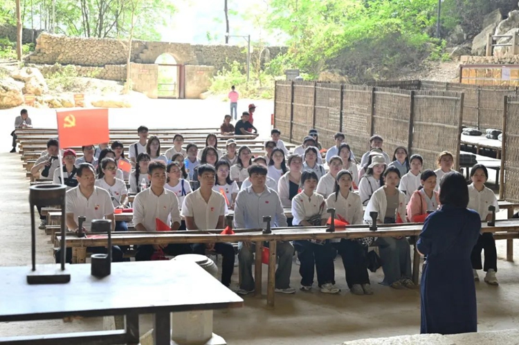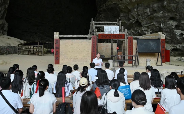 在列寧巖里,講解員向大家詳細(xì)講解了韋拔群同志在列寧巖中傳播革命思想、培育革命干部、加強(qiáng)革命作風(fēng)的光輝歷史,一排排整齊的課桌椅,一張張對稱的學(xué)員床……正是他們追求革命理想的最好見證。