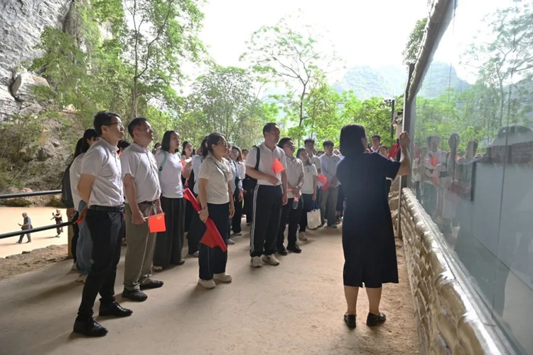 崖中巖洞藏日月,洞內(nèi)農(nóng)運(yùn)轉(zhuǎn)乾坤。當(dāng)天活動第一站,同志們走進(jìn)了列寧巖——廣西農(nóng)民運(yùn)動講習(xí)所舊址。