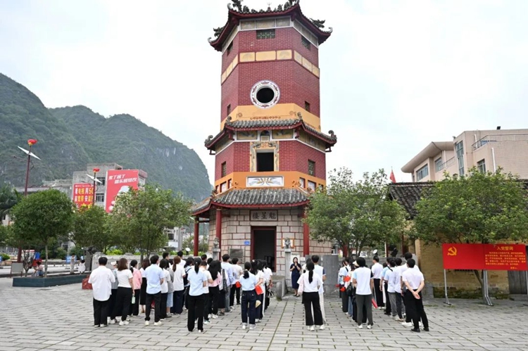 講解員給黨員們詳細(xì)講述了魁星樓建設(shè)的坎坷歷史,以及鄧小平、張?jiān)埔莺晚f拔群等先輩們在魁星樓內(nèi)指揮東蘭人民開展武裝革命的偉大功勛。