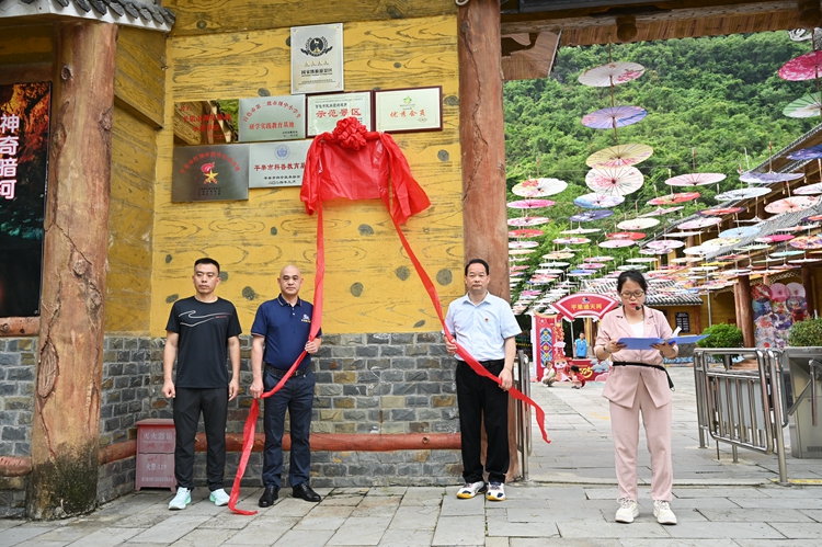 圖為揭牌暨簽約儀式在通天河愛國主義教育基地舉行