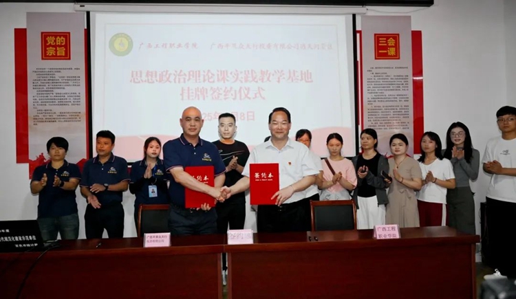 6月8日,廣西工程職業(yè)學(xué)院和廣西平果眾天行投資有限公司通天河愛國主義教育基地舉行共建“思想政治理論課實(shí)踐教學(xué)基地”揭牌暨簽約儀式。