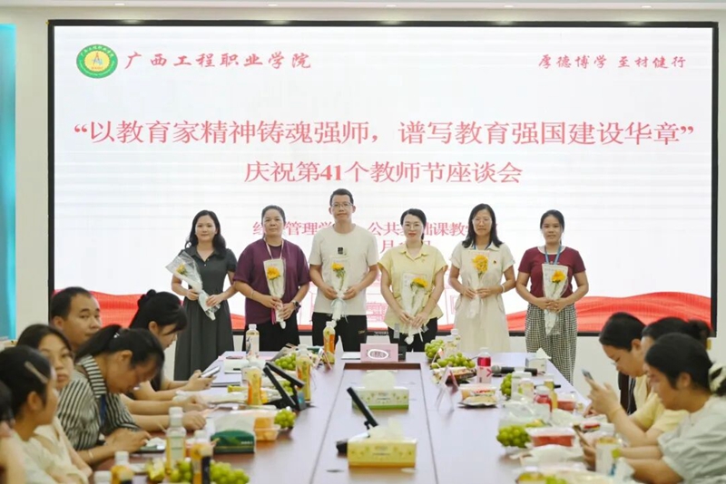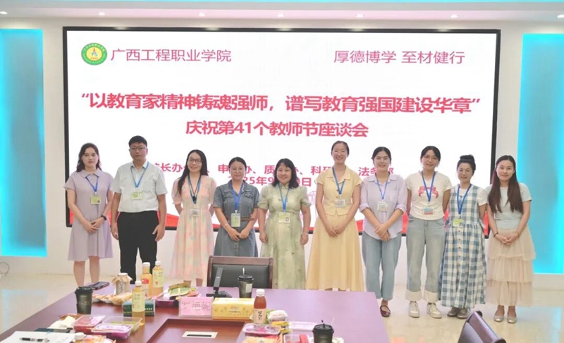 學(xué)校黨委書記、政府督導(dǎo)專員蒙本曼,黨委副書記、校長羅艷妮,黨委副書記黃秋霞,紀(jì)委書記、副校長彭高彬,副校長黃德偉、蔣茂麗,校長助理李明澤、梁善雅等校領(lǐng)導(dǎo)分別組織相關(guān)部門召開主題為“以教育家精神鑄魂強(qiáng)師,譜寫教育強(qiáng)國建設(shè)華章”的教師節(jié)座談會(huì)。