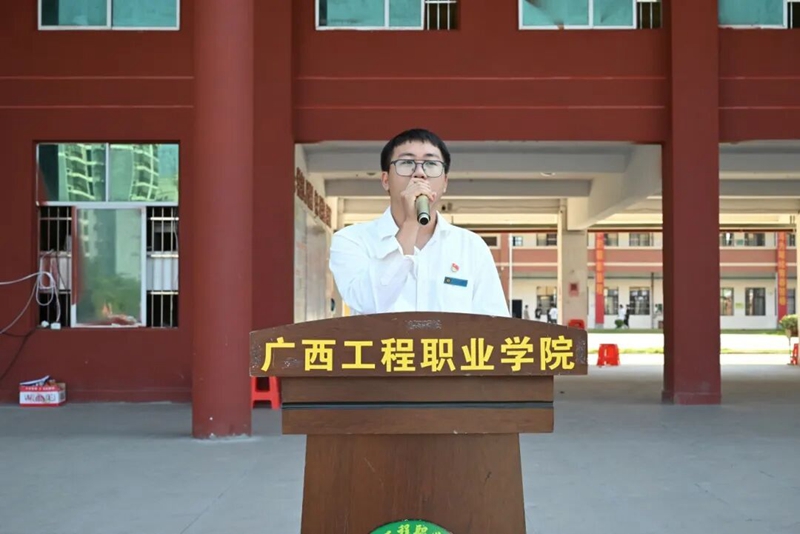 圖為學(xué)生工作處科長(zhǎng)梁義平主持儀式