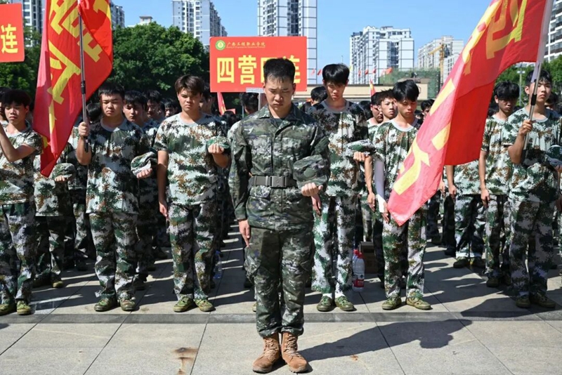儀式現(xiàn)場(chǎng),2025級(jí)全體新生身著統(tǒng)一服裝、整齊列隊(duì),面向國(guó)旗靜立肅立,神情凝重。在持續(xù)3分鐘的默哀時(shí)間里,廣場(chǎng)上鴉雀無聲,唯有警報(bào)聲回蕩。師生們以靜默致敬,深切緬懷在抗日戰(zhàn)爭(zhēng)中英勇獻(xiàn)身的革命先烈。