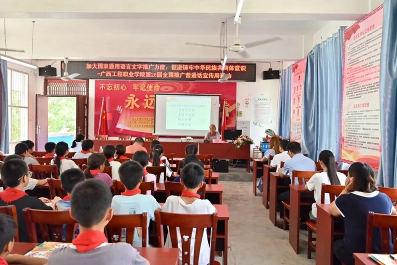 語(yǔ)言是溝通的橋梁,普通話是民族文化傳承的紐帶。為進(jìn)一步推廣國(guó)家通用語(yǔ)言文字,助力鄉(xiāng)村教育語(yǔ)言文化建設(shè),2025年9月19日,廣西工程職業(yè)學(xué)院與太平鎮(zhèn)中心小學(xué)攜手,在太平鎮(zhèn)中心小學(xué)開展了一場(chǎng)內(nèi)容豐富、意義深遠(yuǎn)的普通話推廣宣傳活動(dòng)。此次活動(dòng)不僅搭建了校地合作的交流平臺(tái),更讓普通話的魅力在校園中綻放,為師生們帶來(lái)了一場(chǎng)別樣的語(yǔ)言文化盛宴。