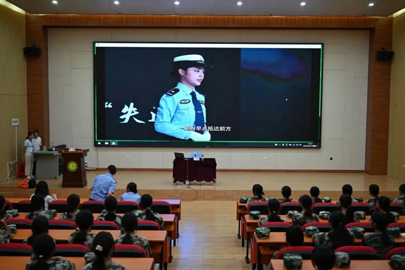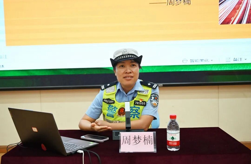 圖為交警大隊教導(dǎo)員周夢楠警官作專題講座