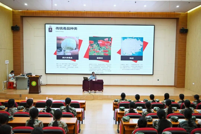 禁毒基地黃雪嬌警官深入剖析新型毒品偽裝形式及危害,提出"不接陌生人物品、不近高危場所、不交涉毒朋友"的"三不"防護策略,增強師生識毒防毒能力。