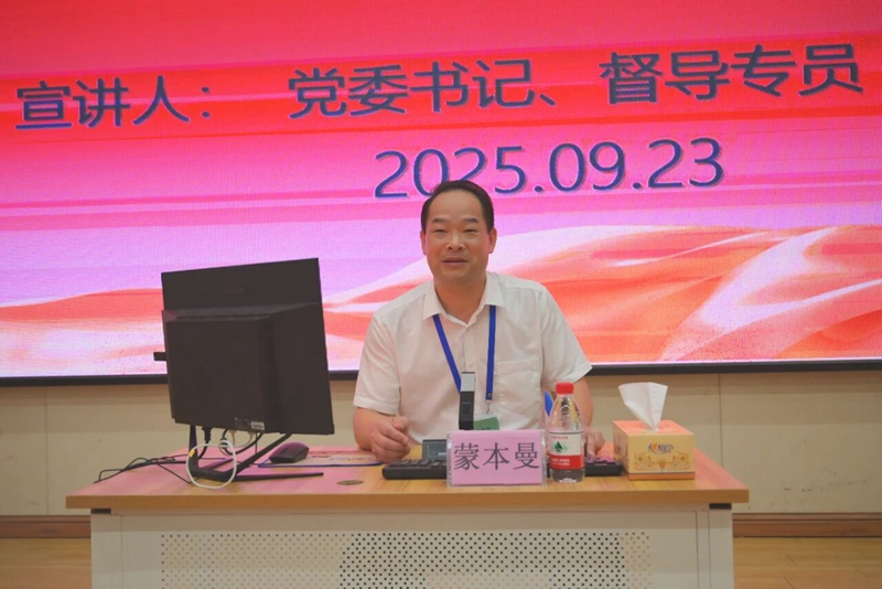 圖為黨委書記、政府督導(dǎo)專員蒙本曼作專題講座