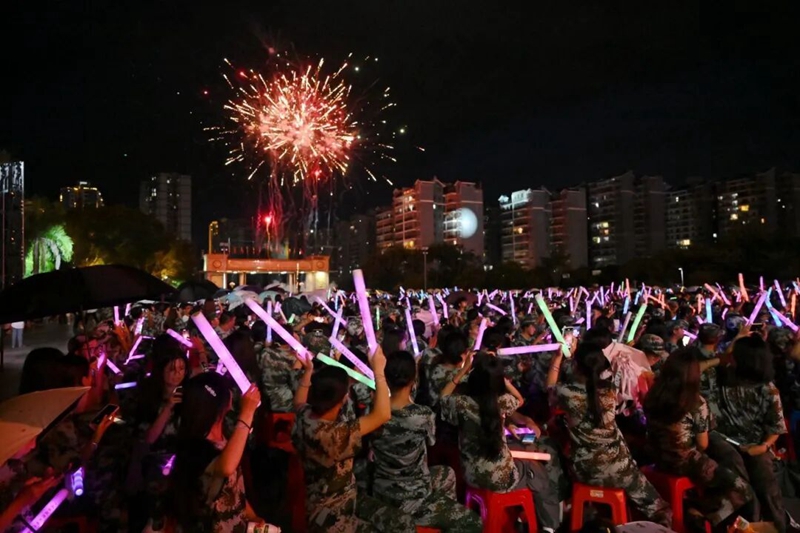 話音剛落,幾聲清脆的聲響劃破夜空,絢爛的煙火驟然綻放。金色、銀色、紅色的火花在墨色夜幕中交織,時(shí)而如流星般劃過(guò)天際,留下璀璨軌跡;時(shí)而似花朵般盡情舒展,綻放層層絢爛,將整個(gè)校園映照得宛如夢(mèng)幻仙境?,F(xiàn)場(chǎng)的新生們紛紛舉起手機(jī),迫不及待記錄下這震撼又浪漫的瞬間,歡呼聲、驚嘆聲此起彼伏,瞬間點(diǎn)燃了全場(chǎng)的熱烈氛圍,也為這場(chǎng)晚會(huì)拉開(kāi)了極具儀式感的序幕。