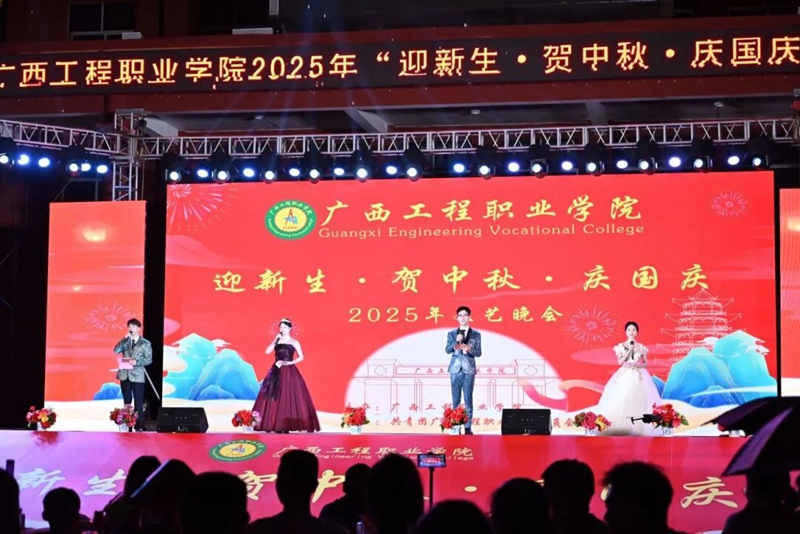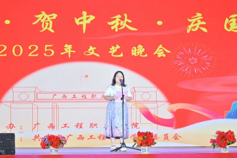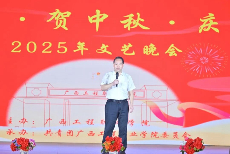 黨委書(shū)記、政府督導(dǎo)專員蒙本曼宣布2025 年廣西工程職業(yè)學(xué)院 “迎新生?賀中秋?慶國(guó)慶” 文藝晚會(huì)正式開(kāi)始。