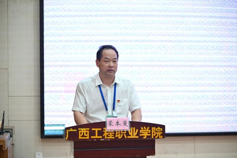 圖為宣講報(bào)告會(huì)由學(xué)校黨委書(shū)記、政府督導(dǎo)專員蒙本曼主持