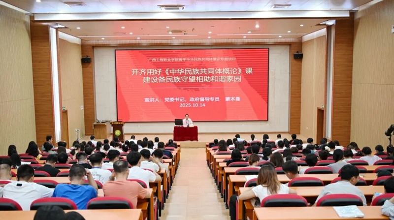 為深入貫徹落實習(xí)近平總書記關(guān)于加強和改進民族工作的重要思想,進一步鑄牢中華民族共同體意識,10月14日下午,我校在圖文信息大樓一樓學(xué)術(shù)報告廳舉行鑄牢中華民族共同體意識專題培訓(xùn)會。全校教職員工參加培訓(xùn)。學(xué)校黨委書記、政府督導(dǎo)專員蒙本曼作專題講座。