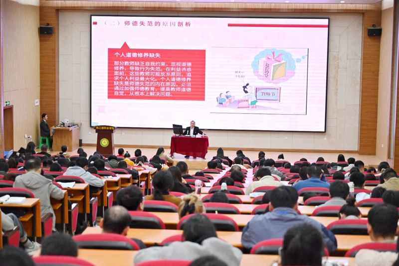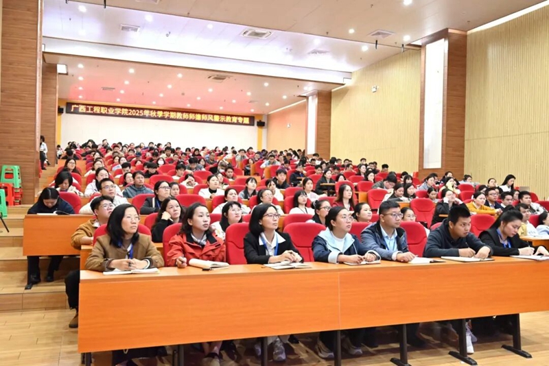 為深入加強(qiáng)我校師德師風(fēng)建設(shè),全面提升教師職業(yè)道德水平,著力打造一支業(yè)務(wù)精良、師德師風(fēng)過(guò)硬的高素質(zhì)師資隊(duì)伍,11月4日下午,廣西工程職業(yè)學(xué)院2025年師德師風(fēng)專(zhuān)題培訓(xùn)在圖文信息大樓一樓學(xué)術(shù)報(bào)告廳舉行。學(xué)校紀(jì)委書(shū)記、副校長(zhǎng)彭高彬作題為《教師師德師風(fēng)警示教育》的專(zhuān)題講座。
