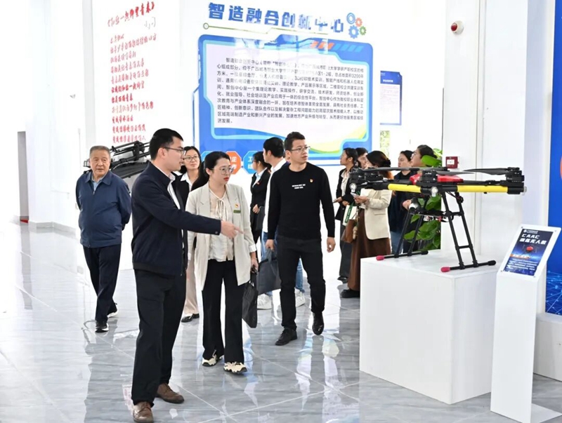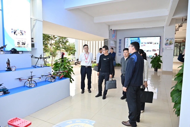 在孫登林副校長(zhǎng)及相關(guān)職能部門負(fù)責(zé)人的陪同下,我校一行先后參觀了廣西城市職業(yè)大學(xué)學(xué)研產(chǎn)職校區(qū)的制造融合創(chuàng)新中心、汽車智能技術(shù)研究中心、知識(shí)產(chǎn)權(quán)與創(chuàng)新中心、中外語言文化實(shí)訓(xùn)中心及教育學(xué)院學(xué)研產(chǎn)職綜合實(shí)訓(xùn)基地等多個(gè)實(shí)訓(xùn)場(chǎng)所。參觀過程中,各實(shí)訓(xùn)中心負(fù)責(zé)人詳細(xì)介紹了實(shí)訓(xùn)室的建設(shè)規(guī)劃、設(shè)備配置、教學(xué)運(yùn)行管理及產(chǎn)教融合實(shí)訓(xùn)項(xiàng)目的開展情況。我校教學(xué)團(tuán)隊(duì)認(rèn)真聆聽講解,仔細(xì)觀摩實(shí)訓(xùn)設(shè)備操作流程,并不時(shí)與現(xiàn)場(chǎng)教師、實(shí)訓(xùn)管理人員深入交流,重點(diǎn)探討了實(shí)訓(xùn)室在課程對(duì)接、技能培養(yǎng)、校企合作、AI賦能教學(xué)等方面的創(chuàng)新舉措,現(xiàn)場(chǎng)還觀看了無人機(jī)在農(nóng)業(yè)、文旅領(lǐng)域的應(yīng)用演示。