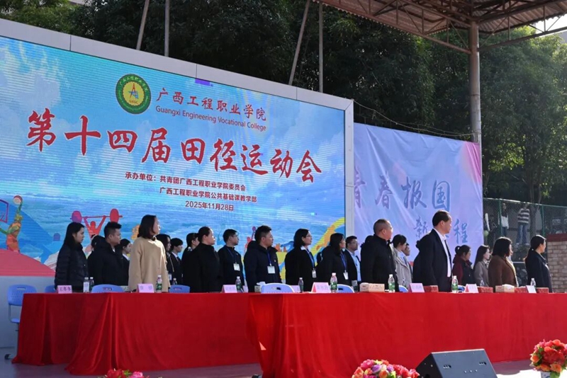 2025 年 11 月 28 日,以 “強體礪能筑匠心·青春報國新征程” 為主題的廣西工程職業(yè)學院第十四屆田徑運動會,在學校運動場隆重拉開帷幕。學校黨政領(lǐng)導班子成員、中層管理干部及各部門負責人出席開幕式現(xiàn)場,全體教職工與各二級學院學生代表齊聚賽場,共同見證這一燃情時刻。開幕式由學校黨委副書記黃秋霞主持。