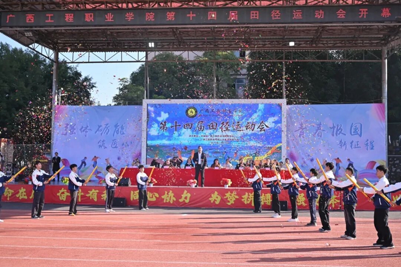 暖陽高照,活力滿盈的廣西工程職業(yè)學院第十四屆田徑運動會現(xiàn)場,激昂的旋律奏響奮進樂章。各二級學院方陣邁著鏗鏘整齊的步伐依次入場,步履間盡顯廣工程院學子的青春朝氣,身姿中彰顯新時代青年的昂揚風貌。