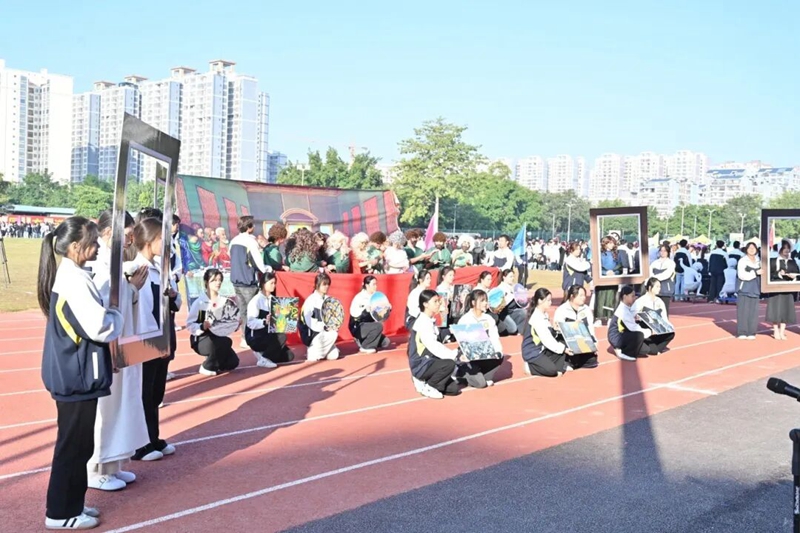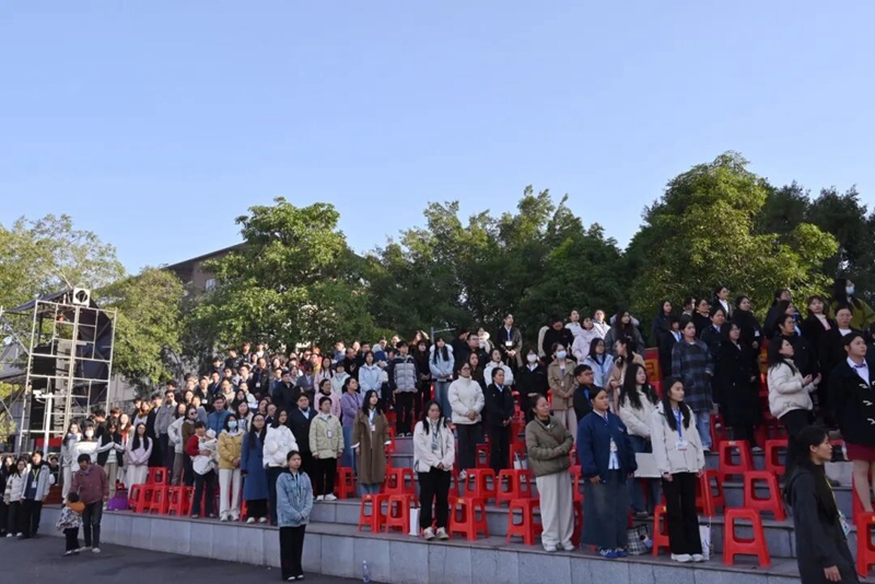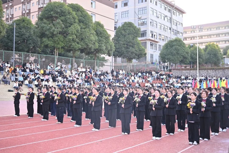 她們手捧鮮花,步履輕快,洋溢著青春朝氣,展現(xiàn)著全校學子的蓬勃風采。