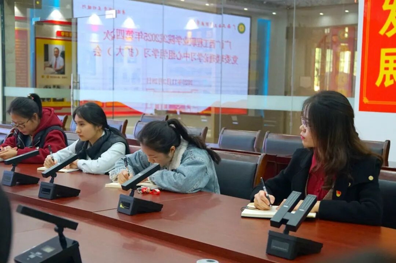 為深入學(xué)習(xí)貫徹黨的二十屆四中全會(huì)精神及“十五五”規(guī)劃相關(guān)部署要求,切實(shí)把思想和行動(dòng)統(tǒng)一到黨中央決策部署上來(lái),2025年11月28日15:00,廣西工程職業(yè)學(xué)院在圖書館一樓大數(shù)據(jù)中心召開2025年度第四次黨委理論學(xué)習(xí)中心組學(xué)習(xí)(擴(kuò)大)會(huì)。全體黨委委員、各黨(總)支部書記、黨委宣傳部工作人員及馬克思主義學(xué)院全體教師參加會(huì)議。