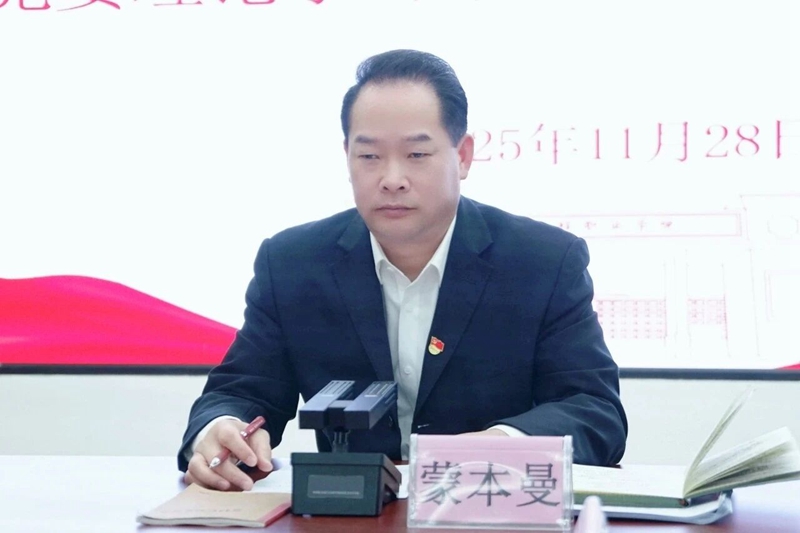 圖為黨委書記、政府督導(dǎo)專員蒙本曼同志主持會(huì)議