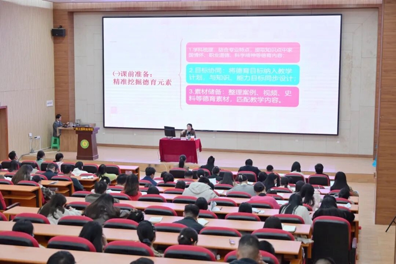 培訓(xùn)中,黃秋霞副書記結(jié)合各二級(jí)學(xué)院專業(yè)特色,分享了德育滲透的實(shí)踐方向。比如,教育學(xué)院可以將師德規(guī)范與職業(yè)素養(yǎng)融入師范實(shí)訓(xùn);經(jīng)濟(jì)管理學(xué)院可以把誠(chéng)信守法、商業(yè)倫理植入財(cái)經(jīng)教學(xué);汽車與機(jī)電學(xué)院要在工科實(shí)訓(xùn)中培育工匠精神與勞動(dòng)精神;鐵道與航空學(xué)院要緊扣行業(yè)規(guī)范強(qiáng)化敬業(yè)服務(wù)意識(shí);土木工程學(xué)院可以將工程責(zé)任與環(huán)保理念融入專業(yè)課程;藝術(shù)設(shè)計(jì)學(xué)院要以文化自信與原創(chuàng)精神賦能設(shè)計(jì)教學(xué)。她還特別厘清學(xué)科德育元素融入與課程思政的關(guān)系,為教師精準(zhǔn)實(shí)踐提供理論指引。