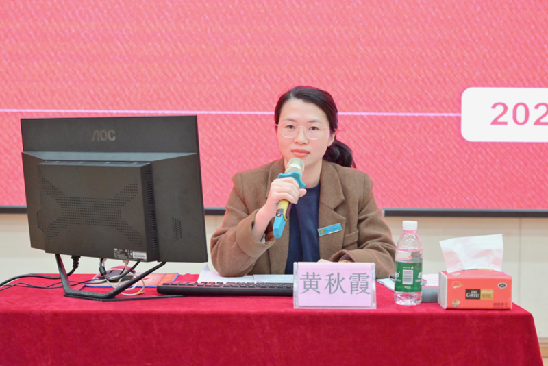 圖為學(xué)校黨委副書記黃秋霞作專題培訓(xùn)