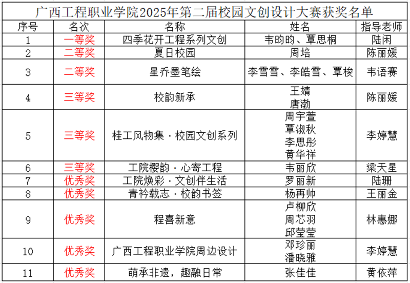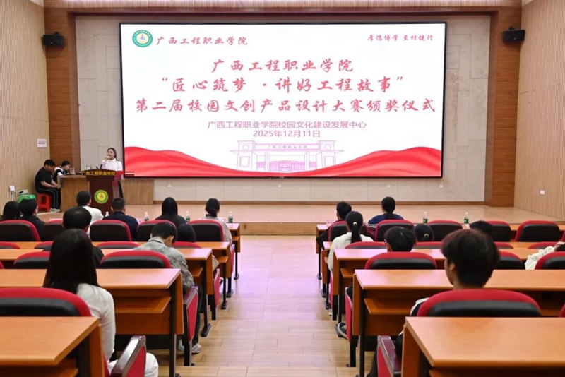 2025年12月11日,廣西工程職業(yè)學(xué)院“匠心筑夢(mèng)·講好工程故事”——第二屆校園文創(chuàng)產(chǎn)品設(shè)計(jì)大賽頒獎(jiǎng)儀式在圖文信息大樓一樓學(xué)術(shù)報(bào)告廳舉行。